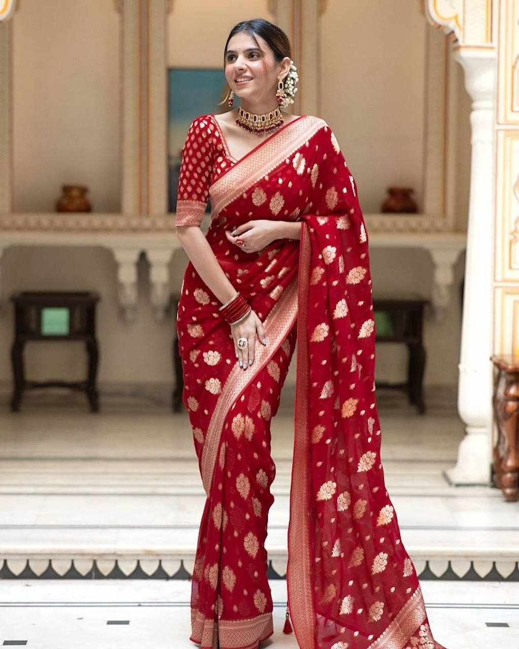 | Name : | KP-R 190 New Traditional Wear Red Saree |