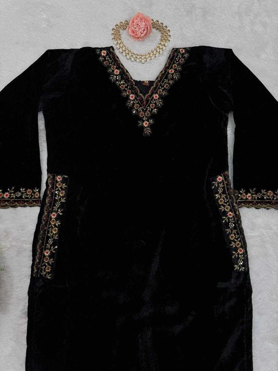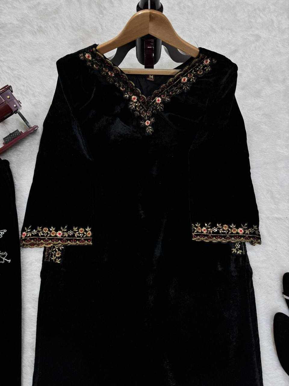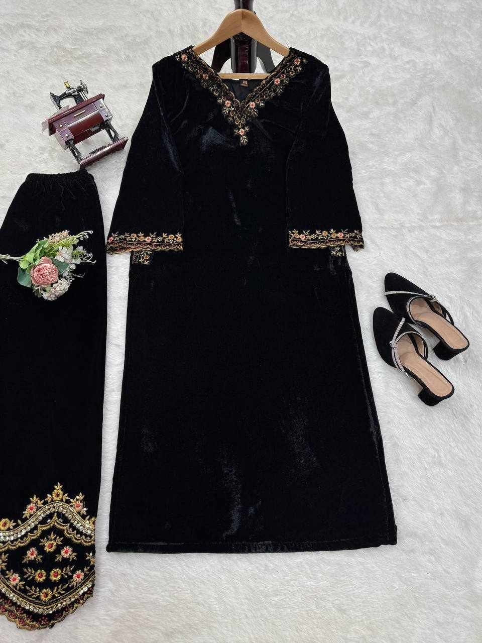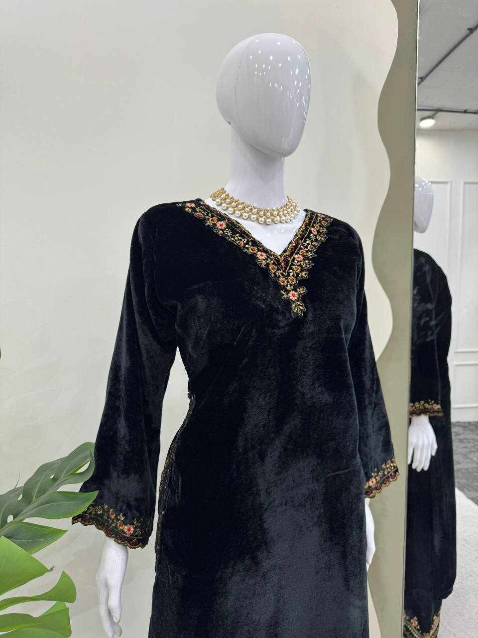 Rich velvet texture combined with detailed embroidery gives a royal, classy, and comfortable look.